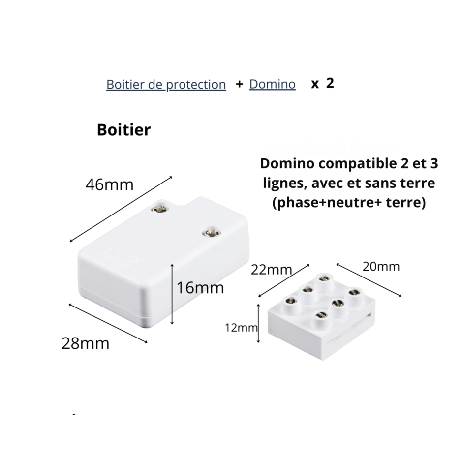 • 2 x Domino 2 Lignes (phase – neutre, sans terre)